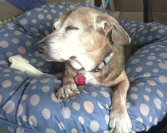 here is mollie, soooo tired yesterday afternoon when we were driving home. she had spent the day following us up and down the stairs as we carried stuff, and then outside, and then ou to the car as we packed it up, always concerned that we might abandon her. she had a lot on her mind plus she got a great cardio workout, but then she was so sleepy immediately when she got in the car but refused to actually lie her head down and sleep.