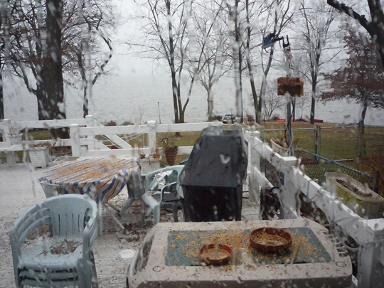 the snow didn’t really start seriously falling until last night, after i’d arranged for everybody to go out for pizza. kevin was surprised that we were going out; he thought i meant we were going to order pizza. because of the many many accidents he saw when working the road many years ago, he doesn’t want to go out in bad weather at all.