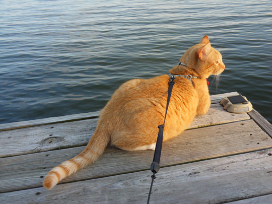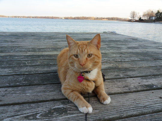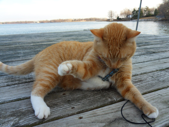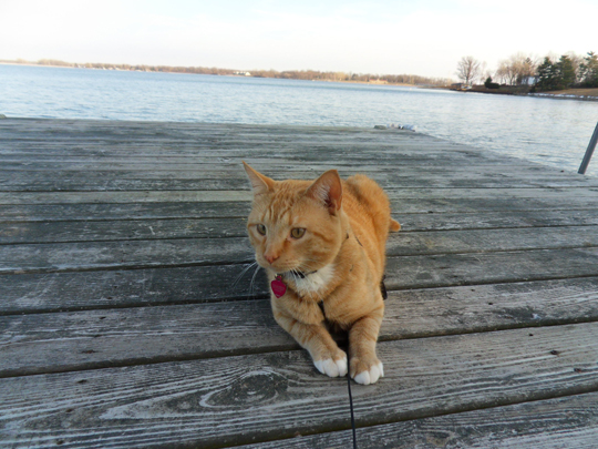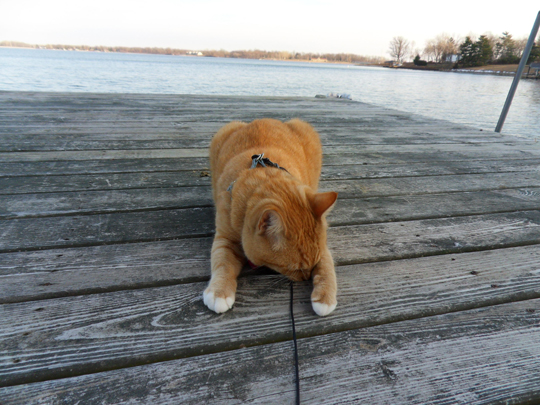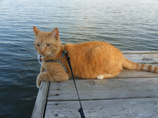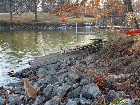 somehow he managed to get back to the dock, where he relaxed from his rocky adventure.