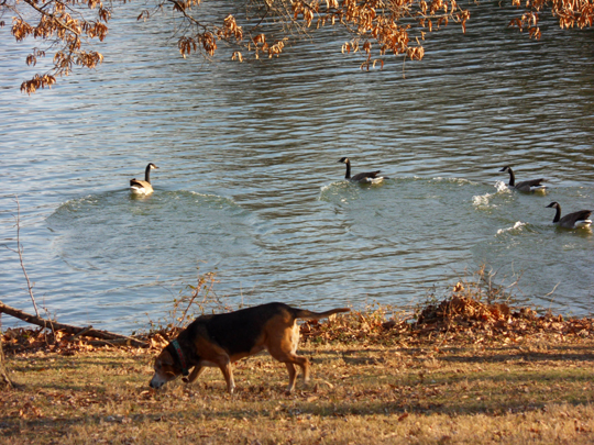 mollie went with us, of course, and the first thing she did is run after the geese in the yard, who flew into the water.