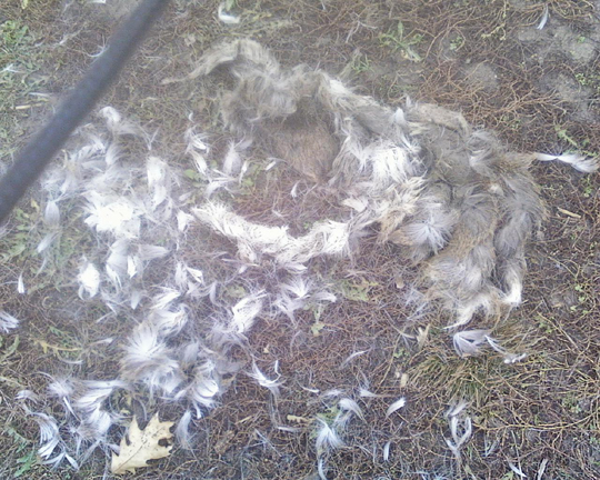it was just the pelt of a pretty big something with a pretty long tail. later, when i described it to kevin, he said it was probably a possum. i guess that’s what it was, but i didn’t recall possums having such long fur, but it’s not like i encounter them face to face a lot. anyway, mollie was wildly tearing at the fur and WHY DOES SHE WANT TO EAT FUR? i tried to reason with her, but then she stuffed as much of the pelt into her mouth and dashed away. it was so funny, and i wish i’d gotten a picture of her because her mouth was just crammed with this big mound of fur plus there was lots more hanging out.