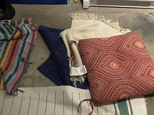 Spot had never covered his food bowl, but that’s because he never had the chance on the porch. He now has plenty of stuff to thoroughly hide it from marauders in the garage.