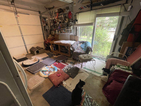 And look at the garage now! Kevin moved almost all the stuff out and it was ready for two cats to live in comfortably.