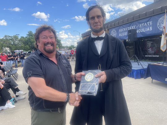 Here’s Randy getting his first-place plaque from Abe. He was very excited.