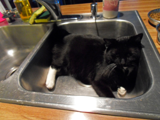 chester was very cozy in the sink after kevin cleaned it out last week.