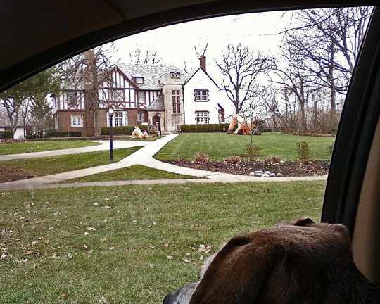 when we were leaving the park i saw this ENORMOUS blowup thing in somebody’s yard and pulled over to take a photo…but the tree blocks your view. if i wasn’t so darn lazy, i would have gotten out of the car to take a picture.