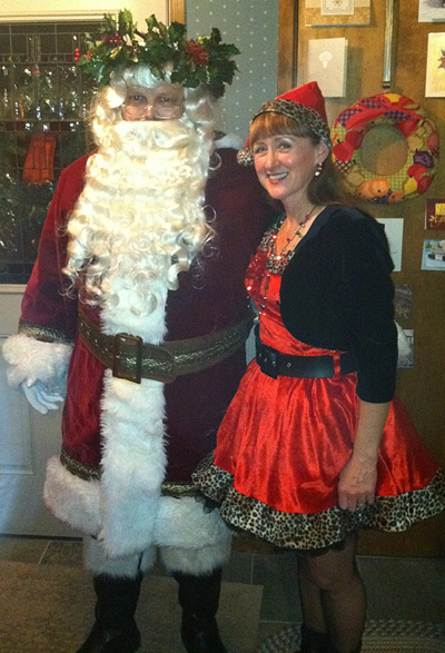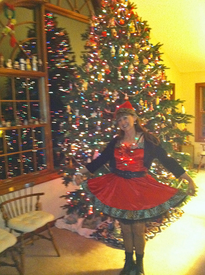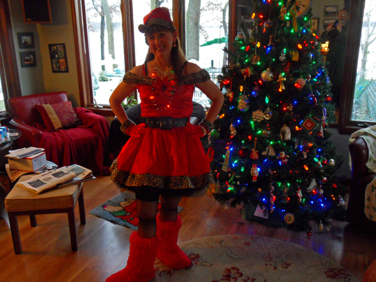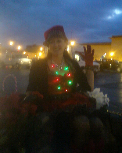 and then, saturday…the christmas parade. it was all randy’s idea…he said that we should be in it to promote my upcoming show, and i said sure, why not. we went to the party center place to look for outfits and he talked me into getting this.