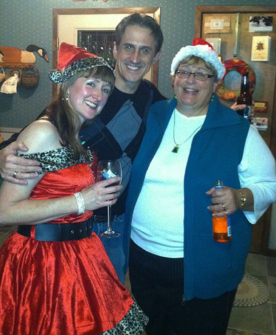 as we were about to leave tom pickett arrived, and here’s me and tom and debi iams, wearing a funny santa hat that plays music and moves around.