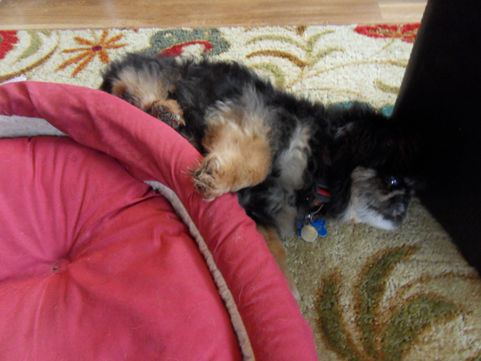 but first, here’s a photo of poor little shortie, a very sweet and good little dog. dad loved him so much, and i know he’s heartbroken and misses him terribly. here he is, earlier in april, sleeping with his eyes open.