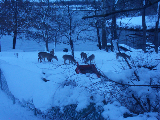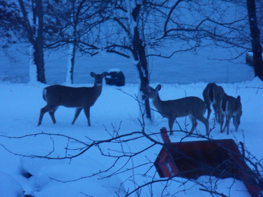 there was a huge assemblage of deer in the back yard the evening after the giant snowstorm.