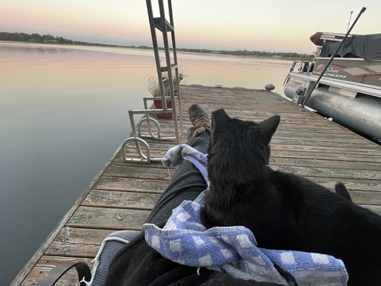 Spot and I spent many evenings enjoying the lake from the dock. Here we are on November 4th.