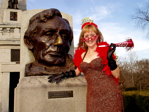 but here’s what she looked like – thin, wearing a dark sweater dress. with a big cross made of diamonds around her neck. she was somewhere in her 60’s, i’d guess. lots of makeup, and her blonde hair was piled on her head, and perched on the top of the mounds of hair was a big fur hat with a hat pin in it.