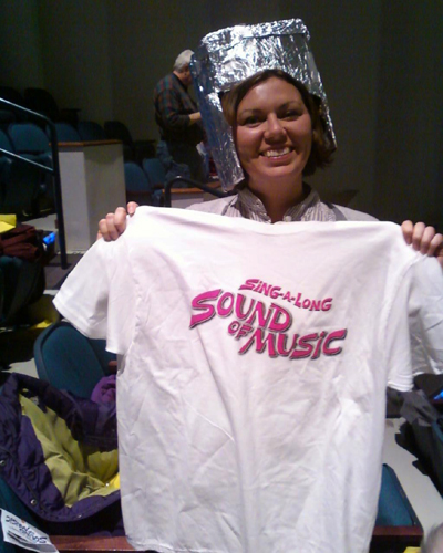 i can’t believe i forgot to post this photo of erica winning a PRIZE at the sound of music sing-along which we attended a couple weekends ago.