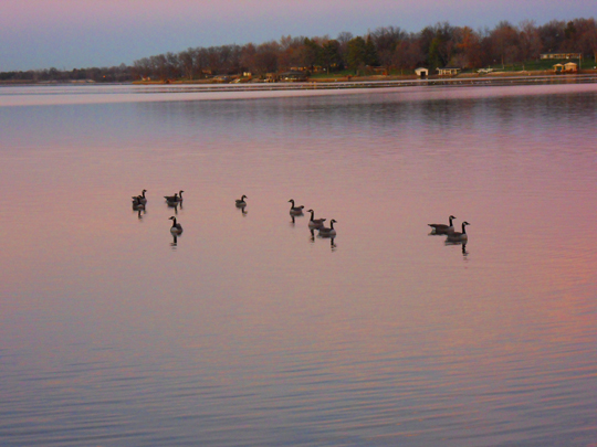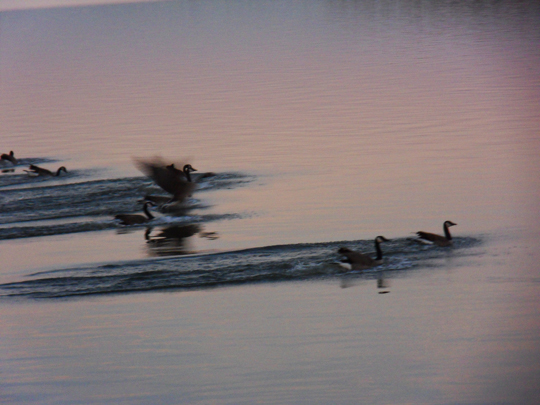 i did manage to take a picture of the geese who were annoyed with me disturbing them in their yard, and flew down to the lake.